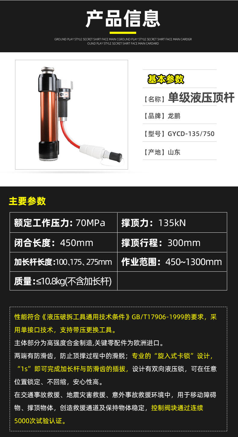 消防液压破拆工具组GYCD-135/750单接口单级液压撑顶器