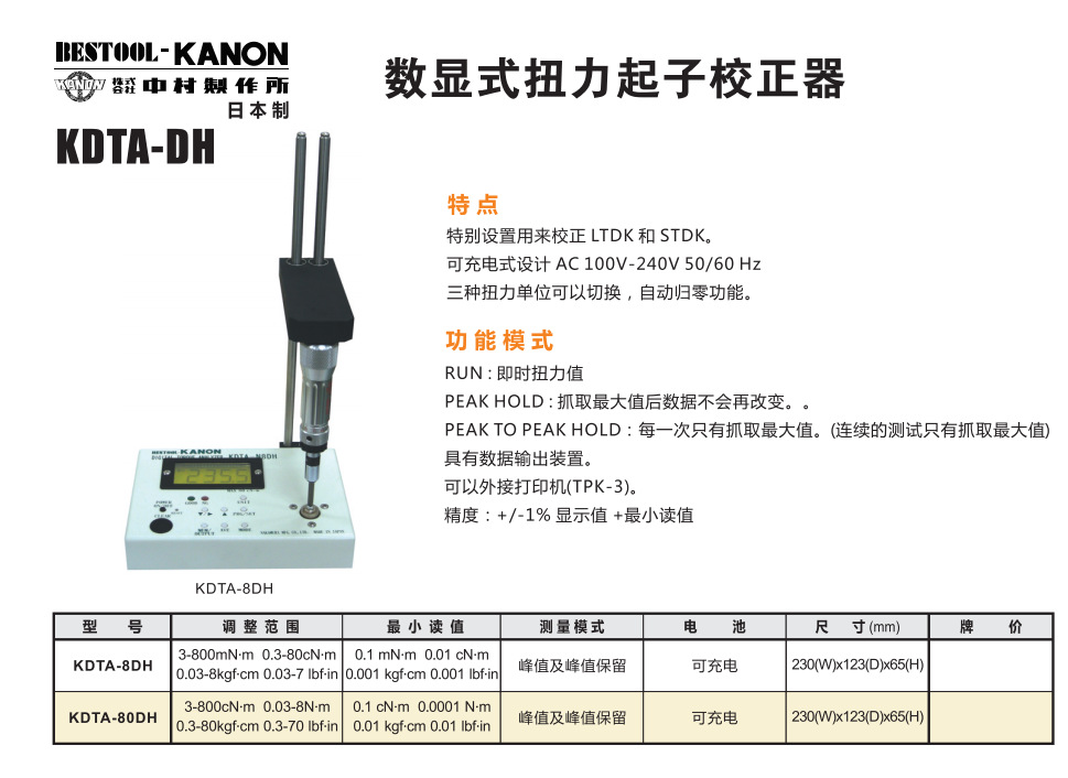 中村KANON扭力起子校正仪 KDTA-8DH 扭矩扳手校正器 扭力螺丝刀校准