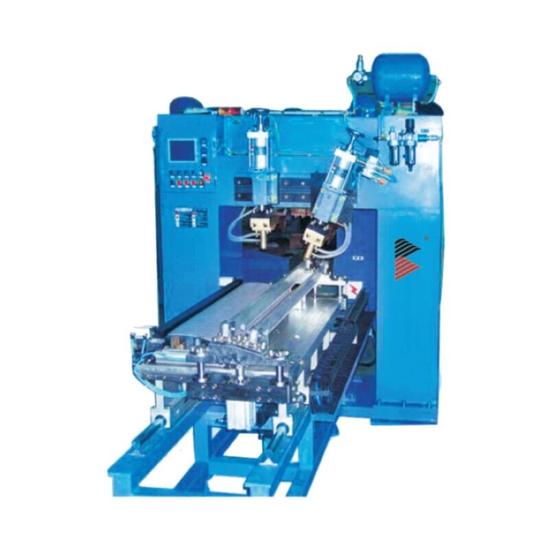 1、采用龙门式结构 ,单面双点焊。平面踏板由两台阻焊变压器,三个焊点同时焊接;弧形踏板由一台阻焊变压器,两点同时焊接。焊接电源固定,工件在工件台上由交流伺服电机通过滚珠丝杆、螺线副拖动,实现工件:的自动移动、焊接。