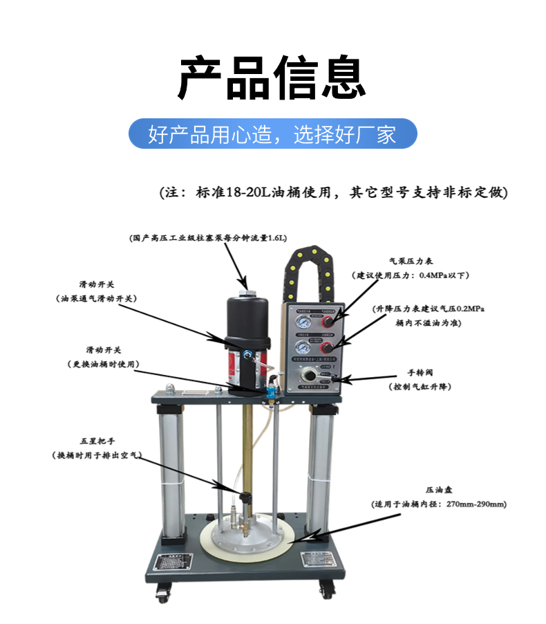可根据客户需求,配置不同的产品。注油机均可提供非标定制。适用于各种润滑油脂桶型号如下:1L,5L,8L,10L,15L-20L,25-60L,180-200L)电话:13817191063