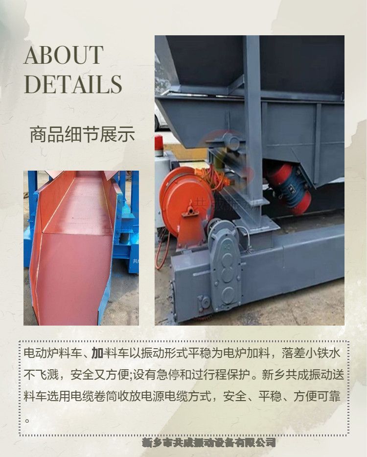 1、以振动形式平稳为电炉加料,落差小铁水不飞溅,安全又方便。