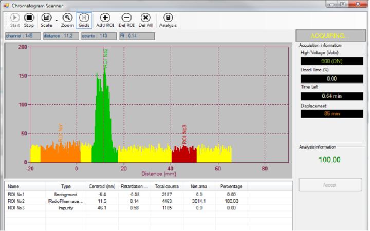 ? Data acquisition of Chromatogram (TLC) 放射性色谱(TLC)数据采集。