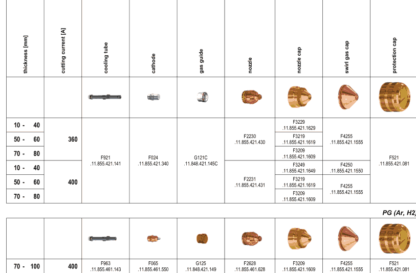 SmartFocus系列等离子是德国凯尔贝研发的等离子电源,内置气体配比箱,适合切割导电金属,F005 F006等F系列耗材,是凯尔贝等离子专用耗材,使用寿命长,切割速度快,切割面光滑。凯尔贝类激光易损件F4025/F4020/F4030/F006,凯尔贝等离子喷嘴F2012/F2008/G101C/F012/F022/F024/F2017,凯尔贝易损件F012/F005/F4030/F4035/F4040,凯尔贝配件F012/F2012/F006/F3028/F501,凯尔贝电极F012编号11.855.411.320,凯尔贝电极F022编号11.855.421.320,进口等离子配件F005/F006/F012/F2012/F2010/F2227,凯尔贝电极F022编号11.855.421.320,凯尔贝类激光等离子电极F005喷嘴F2014消耗件F501,11.855.401.350为F005的订货编号,F005用于凯尔贝SF130/SF200/SF300/SF440等离子的氧气空气切割易损件,电流使用范围20A—130A,使用寿命长,引弧容易,弧柱稳定,切割效果好。电极F022喷嘴F2227