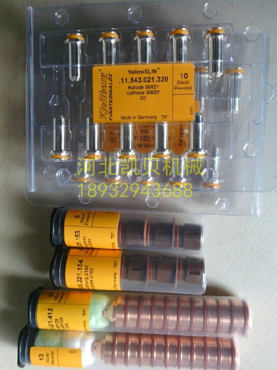 河北石家庄凯贝机械设备有限公司供应:凯尔贝类激光等离子电极G002Y喷嘴G2014Y消耗件G501,11.843.021.320为S002Y的订货编号,S002Y用于凯尔贝HF130/HF160/HF280/HF360/HF440等离子的氧气空气切割易损件,使用寿命长,引弧容易,弧柱稳定,切割效果好,可回收利用,较一般铜电极性价比高。凯尔贝新银电极