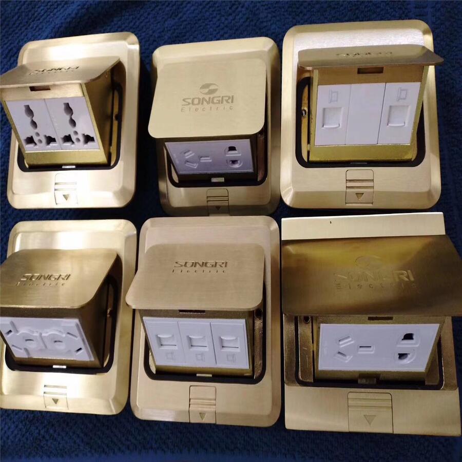 上海松日86型纯铜地面插座防水隐藏式五孔地插电源网络地插