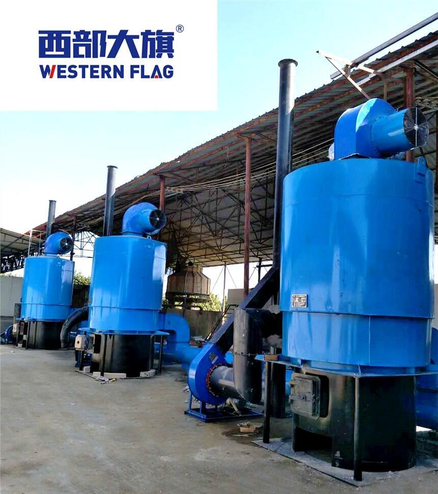 西部大旗立式燃煤热风炉,由炉体、炉座、烟囱以及辅机(鼓风机或引风机)、烟气引风机等组成。