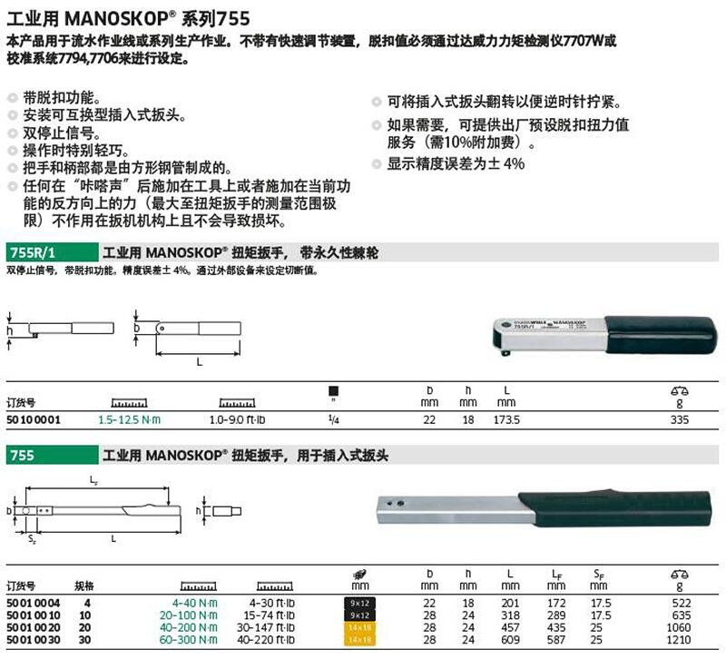 供应达威力STAHLWILLE扭矩扳手:MANOSKOP 755