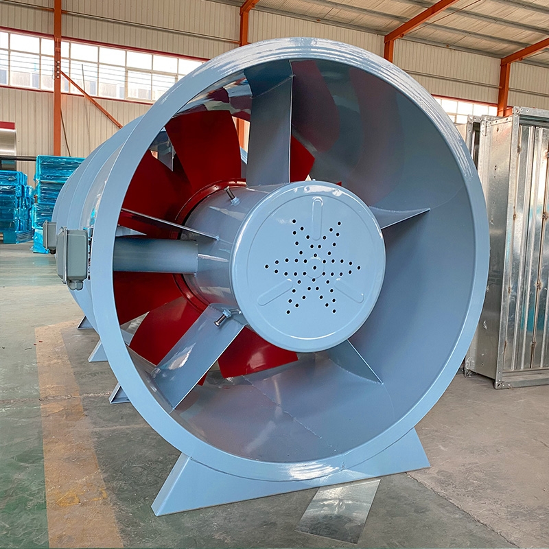 用于有消防要求的建筑物,如地铁、隧道、体育馆、高层建筑、地下商场、车间、烘箱等场合的消防排烟和通风换气,一般采用双速电机,平时低速运行作通风换气用,如一旦发生火灾,会通过电控系统自动切换成高速运行,在半小时内迅速排除烟气,使火场内人员安全撤离,保护国家和人民的生命财产安全。输送空气和其它不自燃,对钢材无腐蚀性气体,气体内不允许有粘性物质,所含的尘土及硬质颗粒物不大于150mg/m3,作通风换气时进气温度不得超过80℃,作消防用时,烟气温度在280℃时能连续运行30分钟以上。
