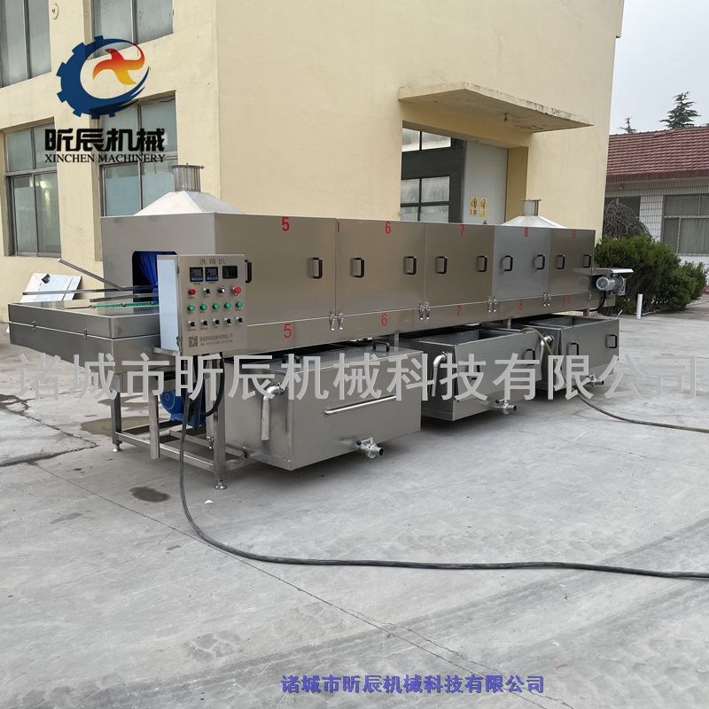 ? ? 昕辰机械周转筐清洗机,清洗分为三段首先为热碱水,其次为热清水,然后为自来水。