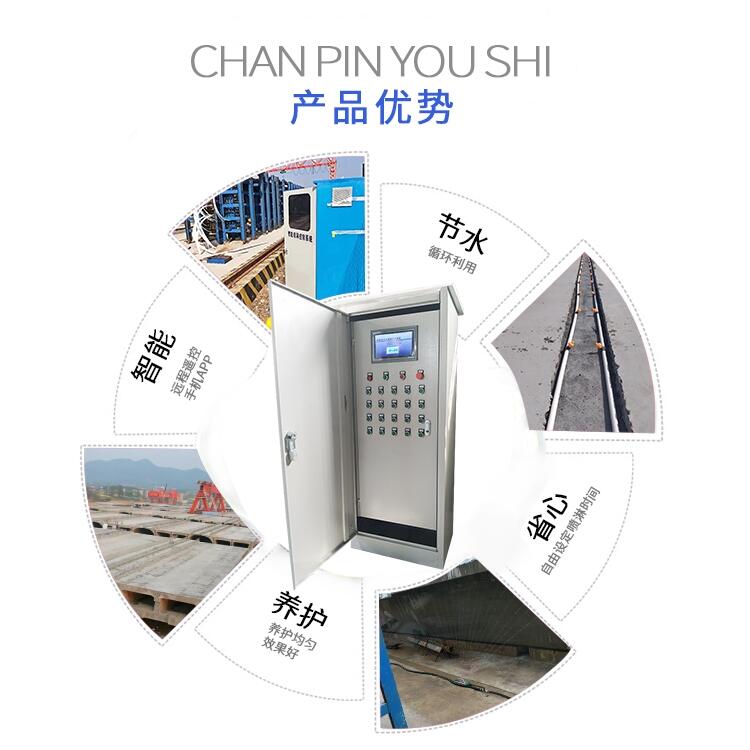 1 首先接进线电源时需要2.5平方4芯的电缆线。在进水口处接上50的进水管,检查喷淋口是否链接正常 次使用前水泵要注入水,否则造成水泵埙坏一切正常后可以通电开机。打开电源开关屏幕会自动出现开机界面 把旋转转换开关换到自动档,点击台座下方的空白方框,设置编辑每片梁的生产日期、梁的编号、喷淋时间以及每个台座之间的间隔时间进行设置,设置好点击确定键【设置只能用英文字母、数字进行设置,喷淋时间以秒为单位,按用时的天气、温度情况和梁的长度设定喷淋的时间】。此项设置也便于提取每片梁的喷淋养护的时间和喷淋次数。