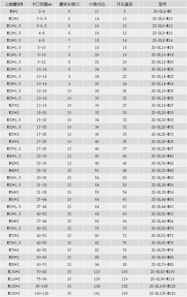 规格 | M20 M25 M32 M40 M50M63 | ||