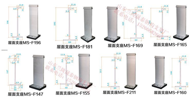 铝镁锰金属屋面直立锁边系统支架(支座)系列:300 400 420 430 500系列。铝合金支座型号: H65mmH75mm H85mm H100mm H115mm H125 H135mm H155mm H165mm H169mm H180mm 铝合金材质(6063 T5)? ?