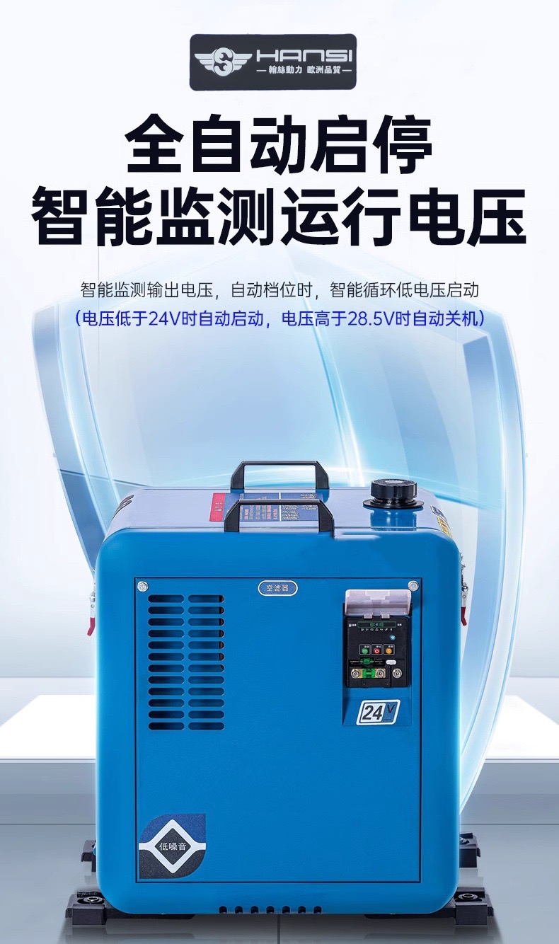 翰丝24V驻车空调柴油发电机货车电瓶充电直流载自启自停带遥全铜智能