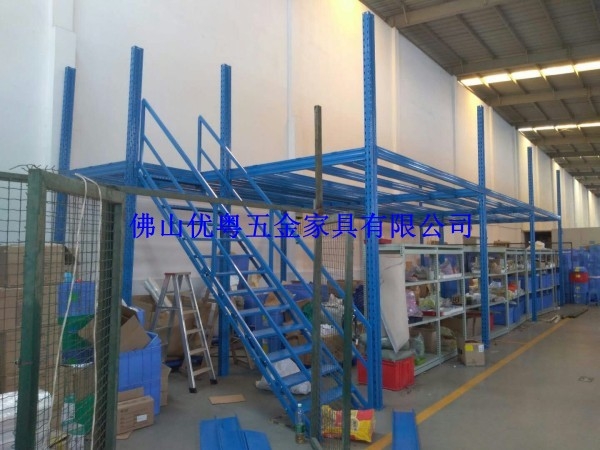 通常使用中型层板式货架或重型横梁式货架做主体,配合叉车或液压升降平台上下楼上货物。多层搁楼式货架能够简单的利用仓库空间。