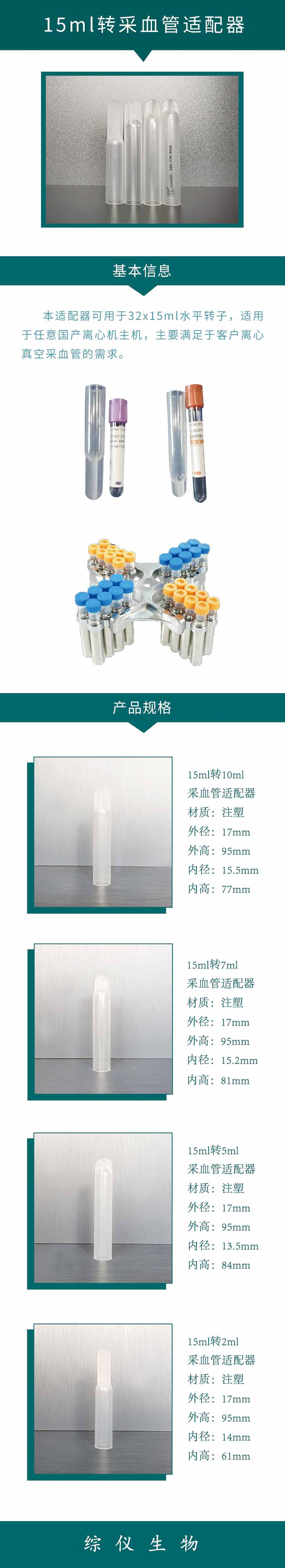 离心机转子适配器PRP真空采血管适配器15ml转10ml7ml5ml采血管套管