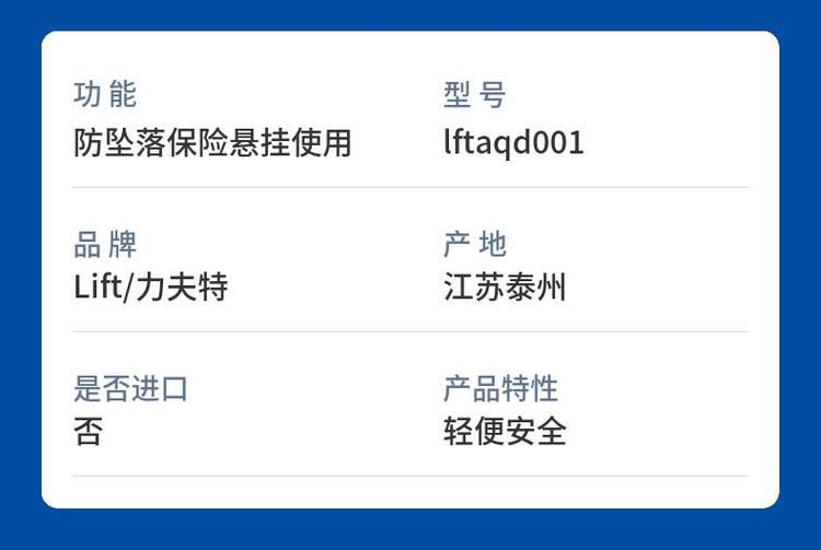 用途范围 | 高空作业防坠落悬挂用 | ||