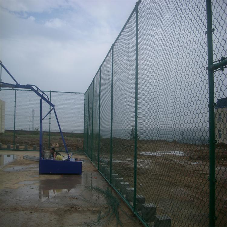 球场围网先挖好基坑,然后将立柱放入基坑中浇筑混凝土,球场围网待混凝土凝固好后再安装围网。