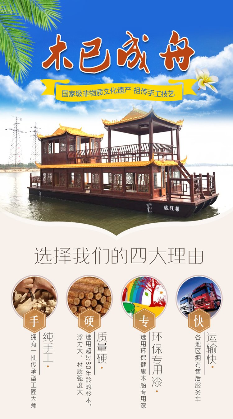 木已成舟牌14.1米双层画舫船45人电动观光画舫游船大型水上餐饮船