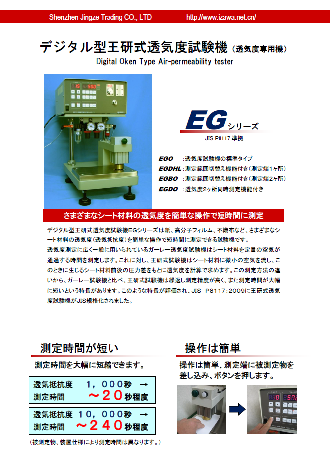 ASAHI王研式透气仪EG01-55-1/2MR锂电池薄膜检测 是否支持加工定制 | 否 | ||