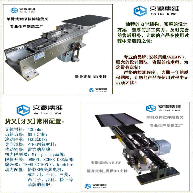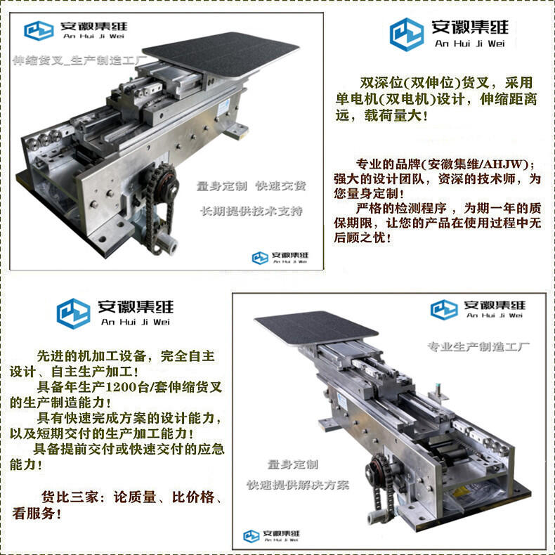 安徽集维智能装备有限公司是一家集研发、设计、生产、销售为一体的堆垛机双向自动伸缩牙叉制造厂家,拥有多位资历深厚的工程设计师和经验丰富的技术团队,全套的机加工设备,自主设计、自主生产,具备年生产1200台套的制造能力,具有快速完成方案设计的能力,以及短期交付的加工制造能力,具备提前交付或快速交付的应急能力,是业内较具规模的实体工厂!
