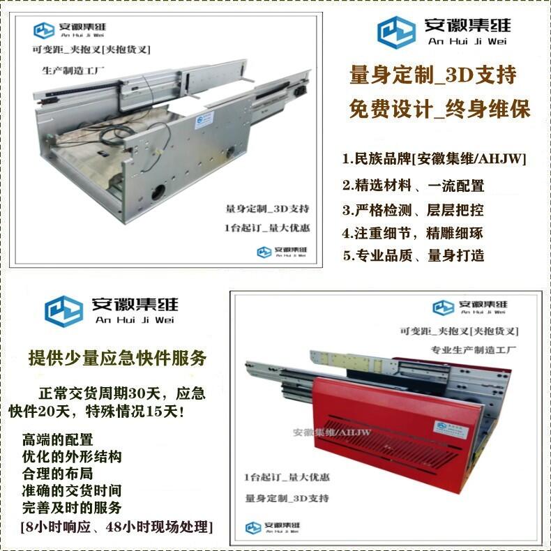 安徽集维智能装备有限公司[马鞍山市]是一家集研发、设计、生产、销售为一体的夹抱式伸缩货叉生产制造企业,拥有完整的质量管理体系、经验丰富的设计师,成套的机加工设备,自主设计、自行生产,具备年生产1200台套伸缩货叉的制造能力,具有快速完成方案的设计能力,短期交付的生产加工能力,具备提前交付或快速交付的应急能力!