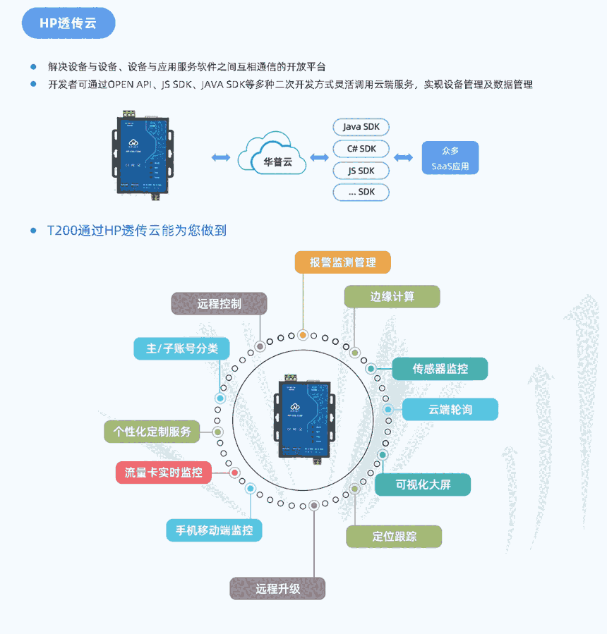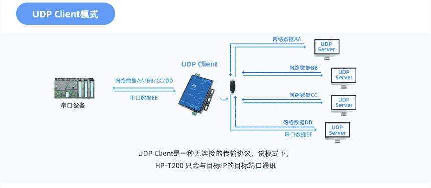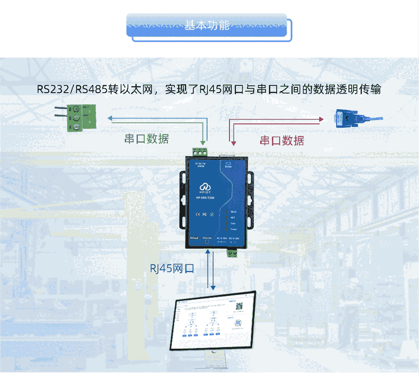 HP-ERS-T200是一款工业级串口服务器,实现了RJ45网口与RS485或RS232之间的数据透明传输;支持Modbus网关功能;支持多种保活机制;支持注册包+双向心跳包、虚拟串口、自动重连等功能。