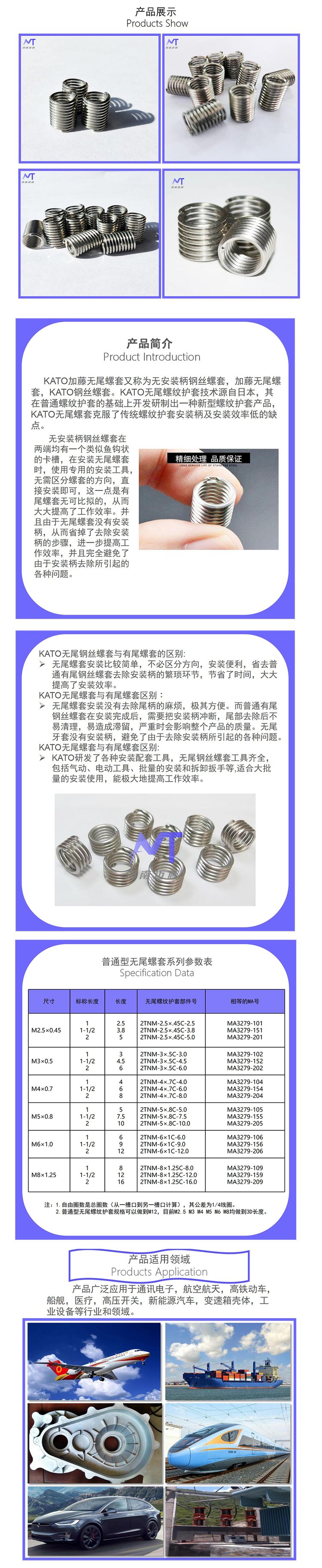 KATO加藤不锈钢304无尾钢丝螺套保护套螺纹牙套