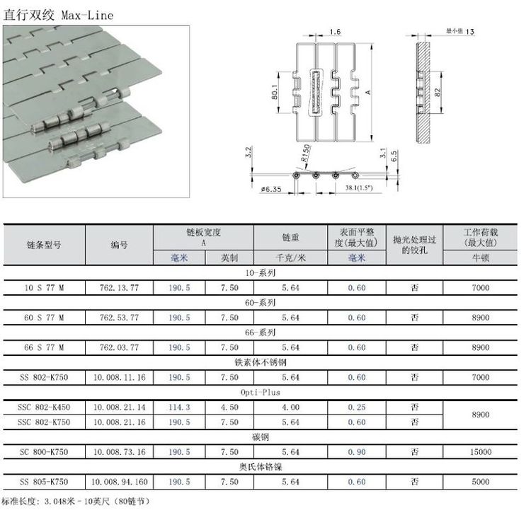 莱克斯诺Rexnord 金属平顶链板 直行双铰MAX-LINE