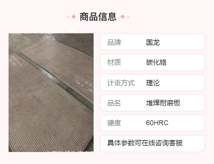 国龙品牌碳化铬堆焊耐磨板硬度60HRC耐磨板材