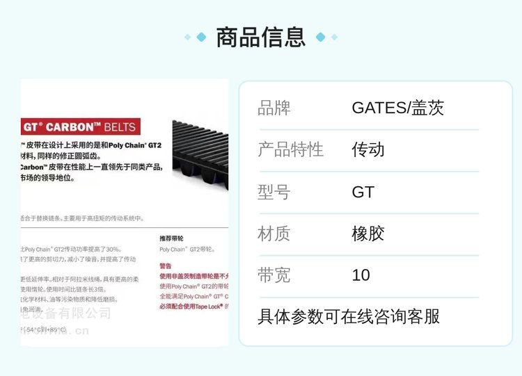 使用限制 | 必须使用Poly chain gt2的带轮,非盖茨制造带轮不允许使用 | ||
