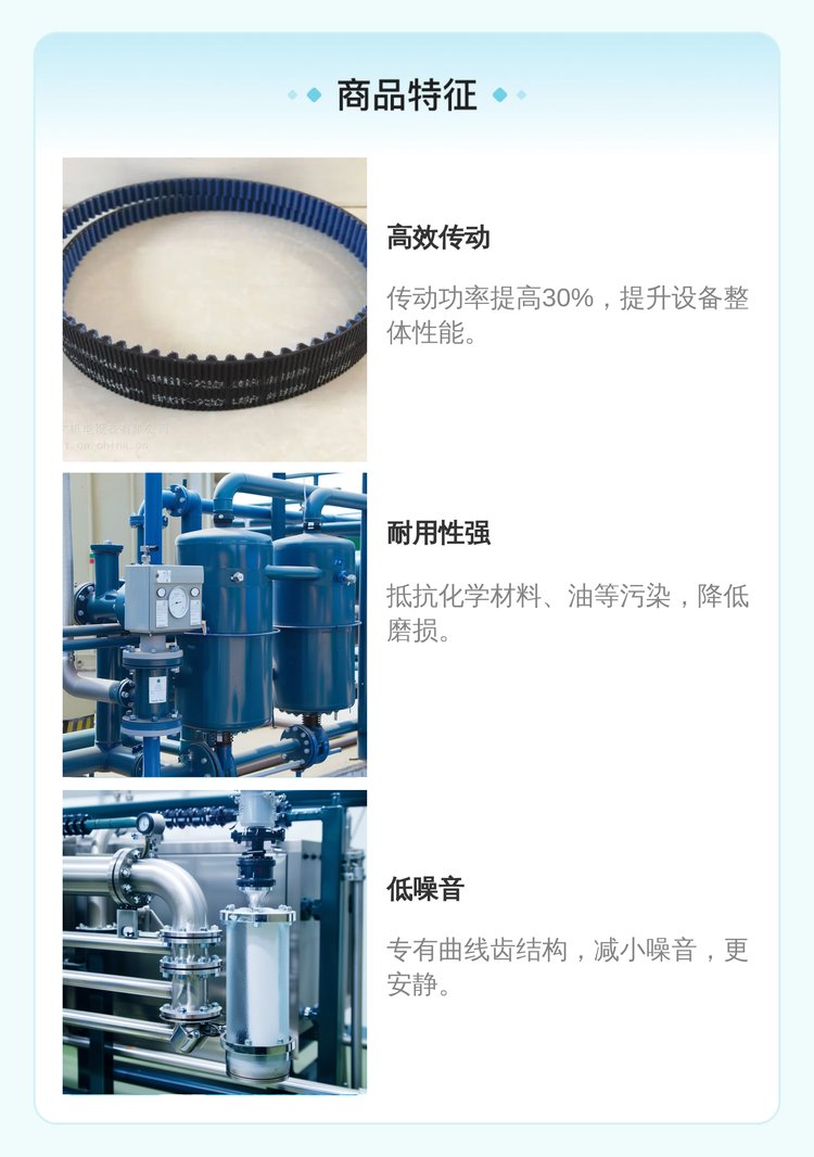 设计特点 | 采用坚韧的聚氨酯材料和修正圆弧齿设计 | ||