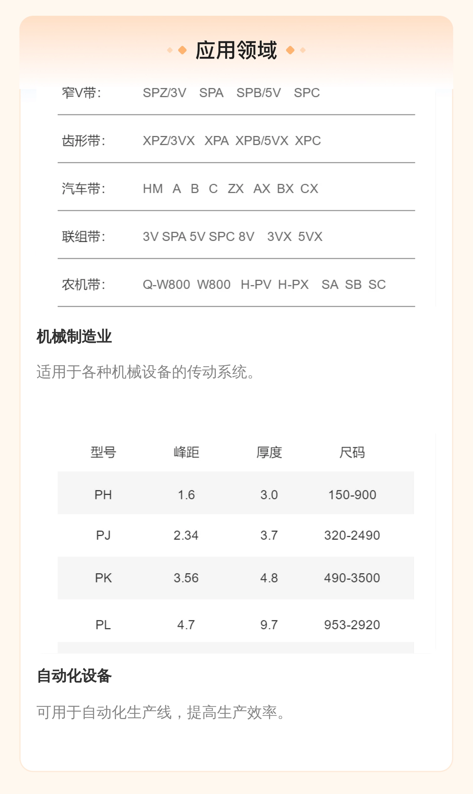 产品应用场景 | 工业制造、机械设备传动等 | ||