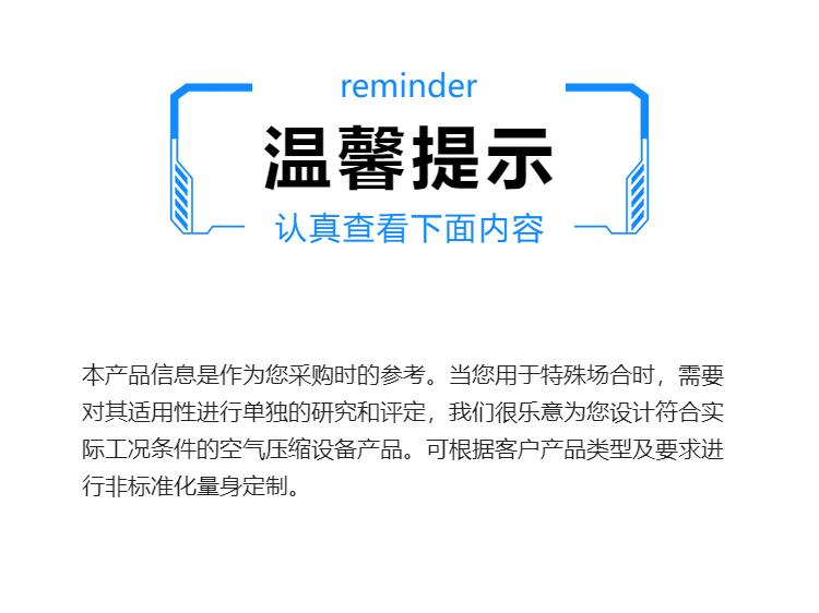 性能 | 低噪音、可变频、防爆等空压机 | ||
