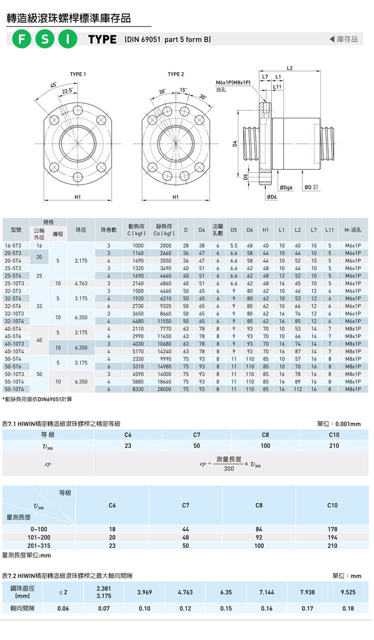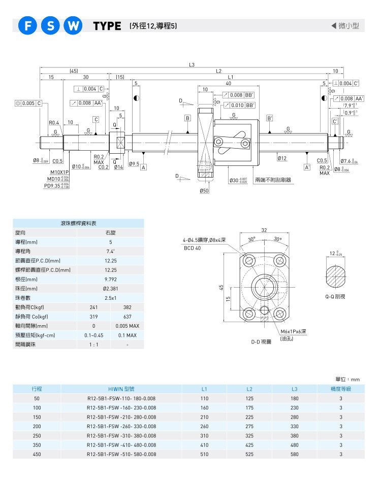 上银静音型hiwin滚珠丝杠R45-16K5-FSC