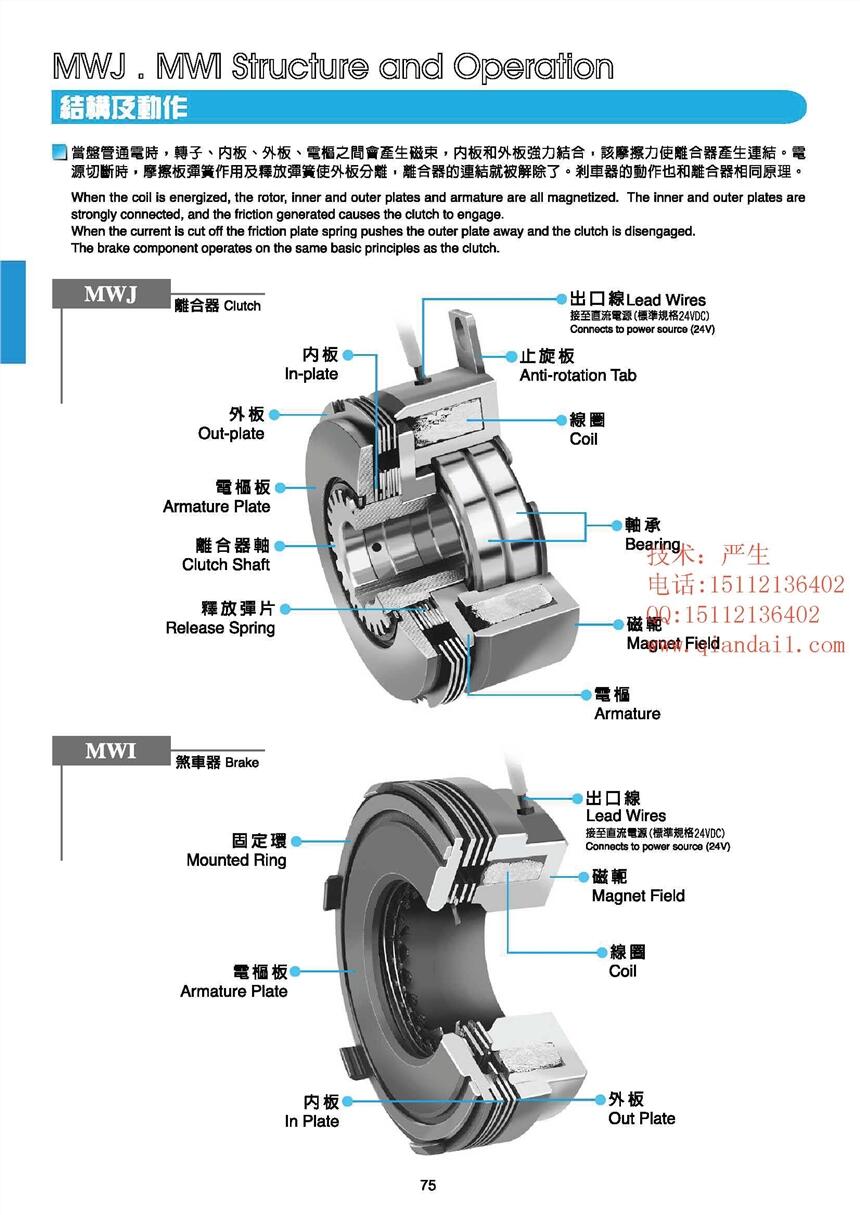 湿式多板电磁刹车器:MWI1S2AA/MWI2S5AA/MWI005AA/MWI010AA/MWI020AA