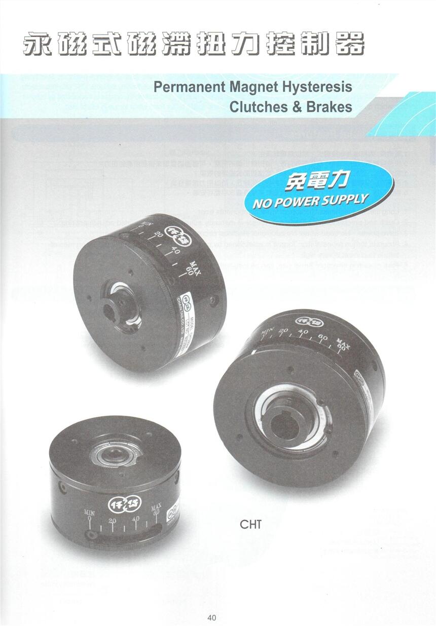 仟岱公司所制作的永磁式磁滞扭力控制器有高可靠度的扭力控制功能以及不会磨损的特性。相对于摩擦声,此种控制器的扭力是经由磁力作为传输,它可以对一连串驱动的元件提供优越的过载保护,或在扭力建立时,产生一种缓冲的力量。典型应用在绕线机、旋盖机及扭力限制的机构上。