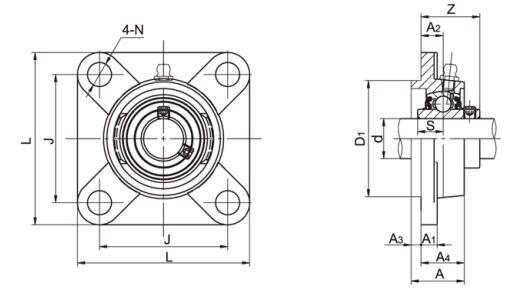 * 该系列的轴承座可在端面车盖槽用以安装铁盖来防止灰尘的进入并确保操作安全。