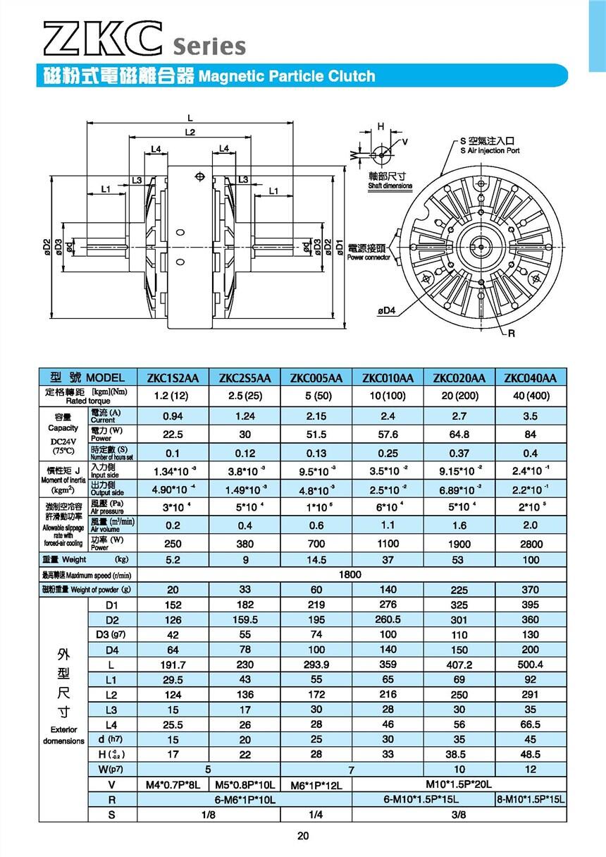 ZKC1S2AA台湾仟岱磁粉离合器