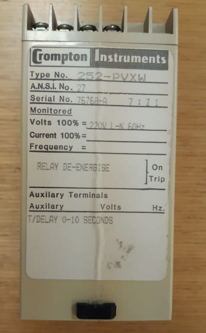 Crompton电压保护继电器 253-PVMG 039-26502-0440 Input:440V 50/60Hz