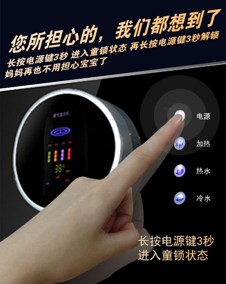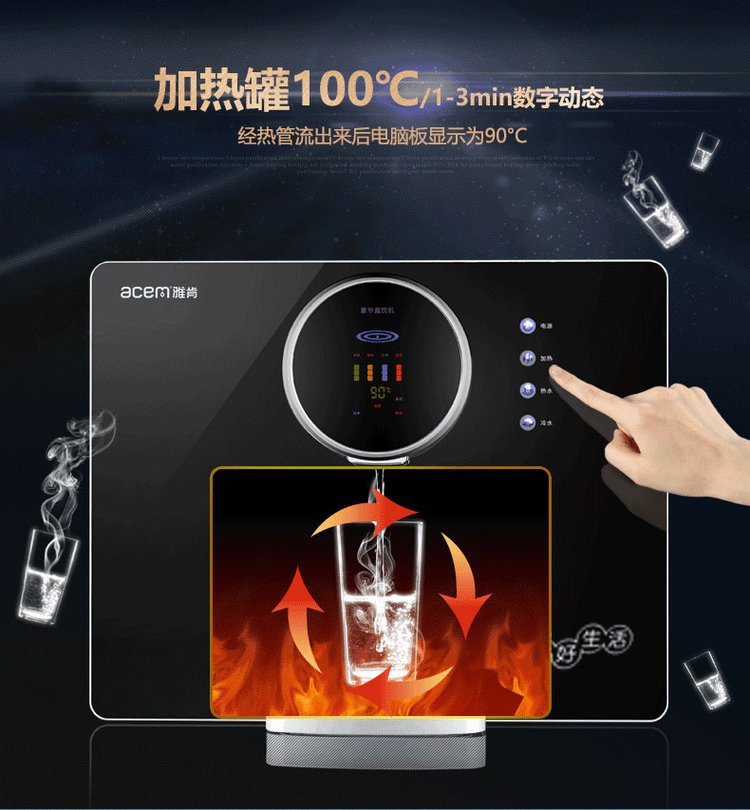 黑色高端触屏加热一体机反渗透纯水机城市建材家居款