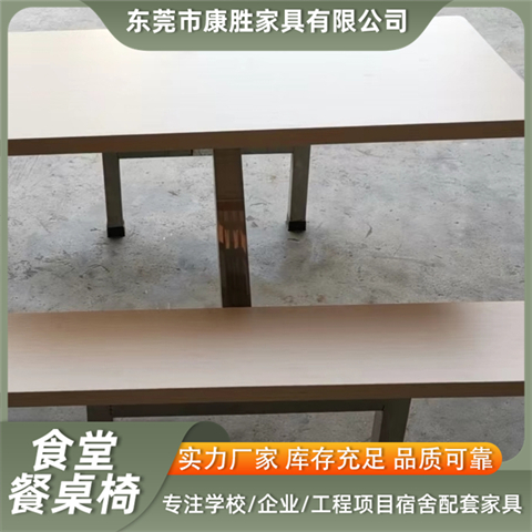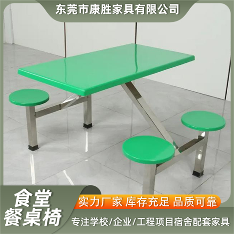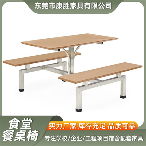 员工食堂餐桌椅条凳连体餐桌4人不锈钢餐台康胜家具