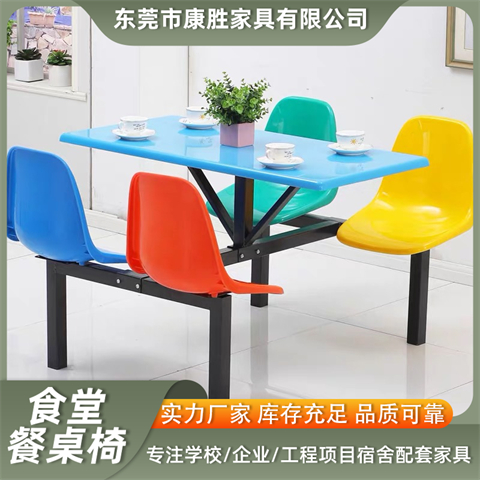 公司食堂用餐桌椅KS台面凳面木板支架不锈钢条凳4连体餐桌