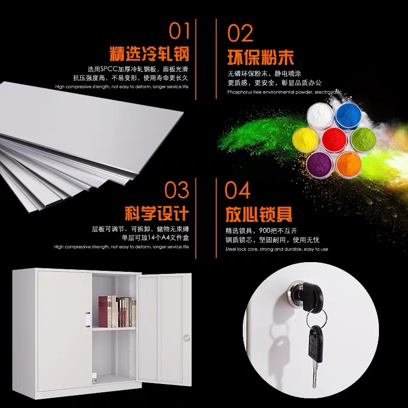 办公室文件铁皮资料铁档案柜财务凭证柜玻璃书柜带锁储物柜子