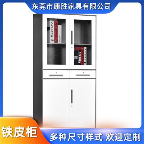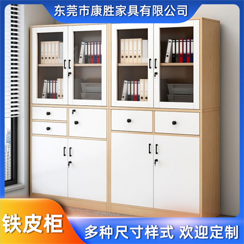 康胜办公室用铁皮柜子上玻璃下铁门柜KS中二抽屉铁皮文件柜