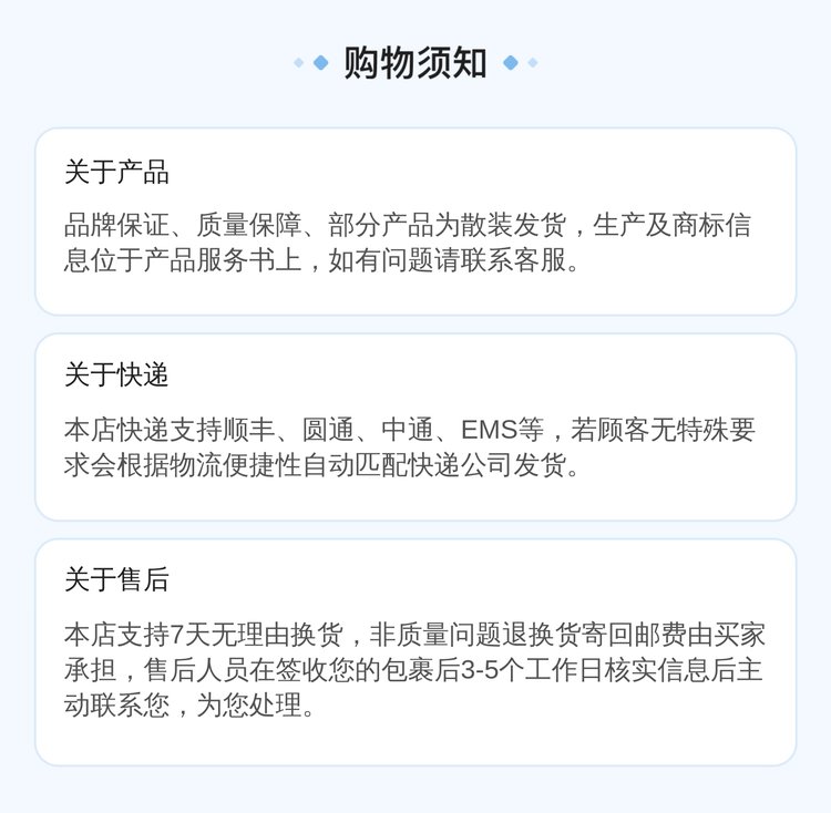 售后服务 | 具体售后服务以店铺说明为准 | ||