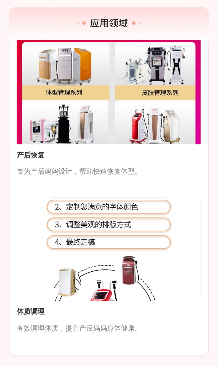 产品用途 | 体型管理、皮肤管理、产后修护 | ||