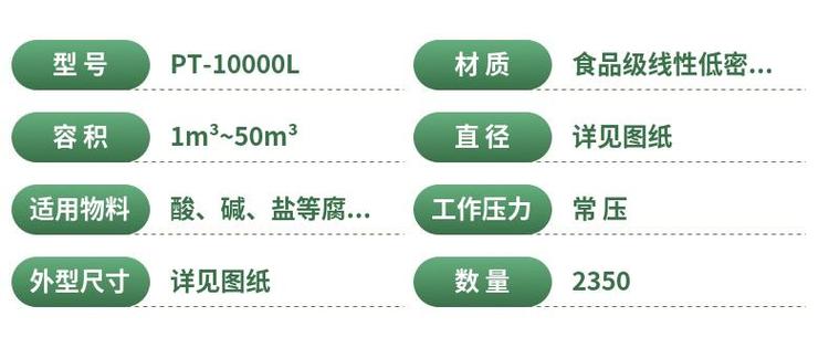 适用物料 | 酸、碱、盐等腐蚀液体储存 | ||