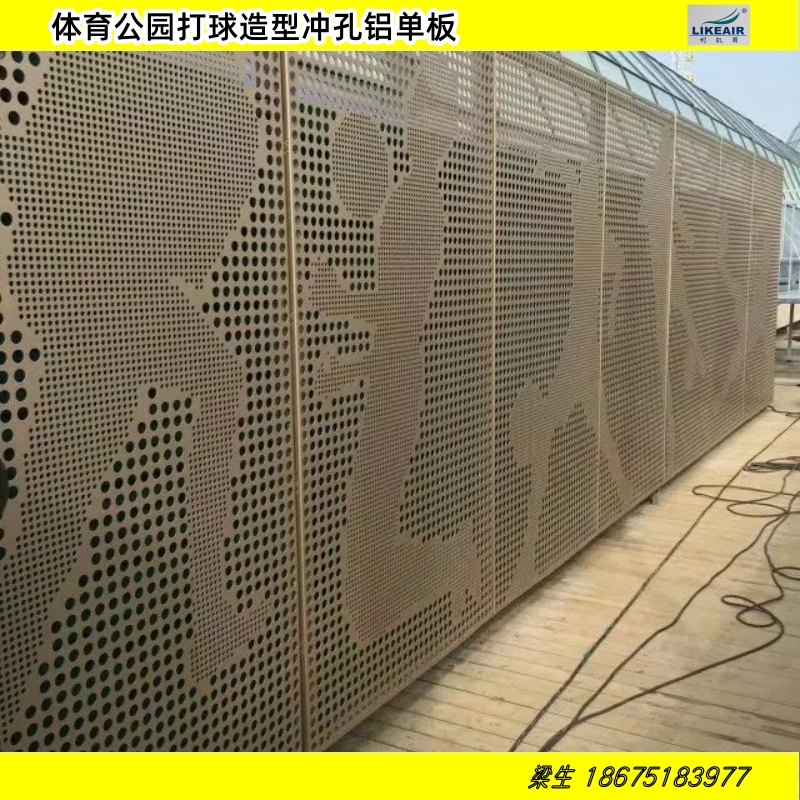 2、运动图案冲孔造型铝板性能比其他装饰材料有很多的优越性,防虫、防火、防潮,而且质轻、强度高,适合各种恶劣的环境。