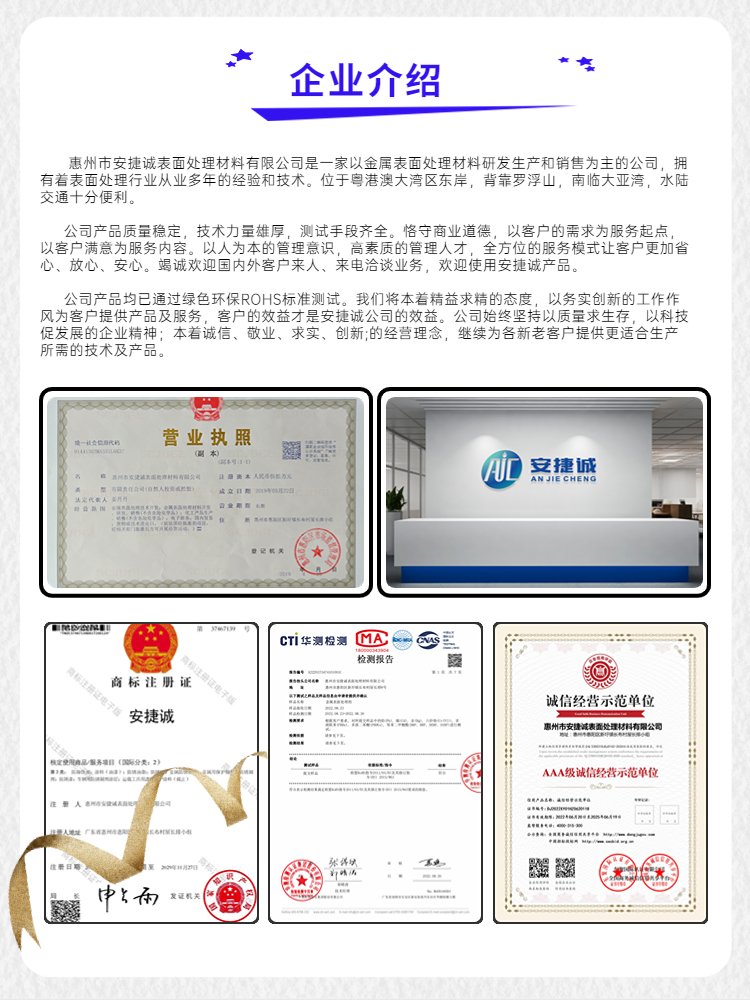 商铺名称:惠州市安捷诚表面处理材料有限公司