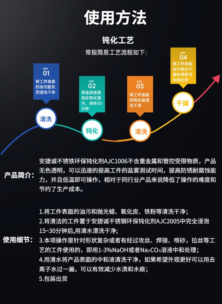 效果 | 提高不锈铁材质的防锈耐腐蚀能力 | ||